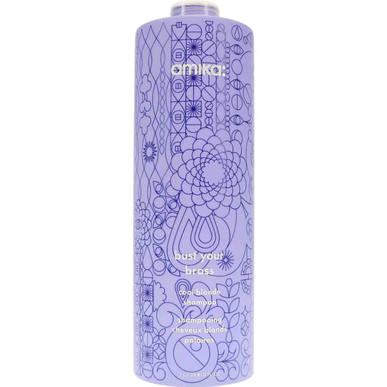 The Bust Your Brass Cool Blonde Shampoo and; Conditioner from Amika is specifically designed to eliminate the brassy notes that can creep into bleached hair over time. The ultra-violet tone keeps your hair color cool so you don’t have to worry about yellowing.