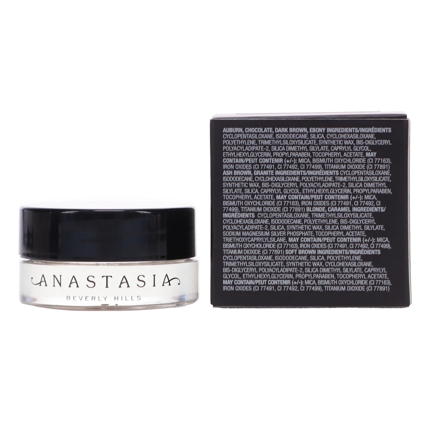 | How To Apply | Dipbrow is best applied with Anastasia Beverly Hills Brush 12, an angled brow brush with short, stiff bristles. You can easily outline and fill a perfect eyebrow. After applying the desired amount of color, be sure to blend with the clean spooley end of Brush 12. Never apply the pomade by directly putting your brush into the pot and applying the product on your brows. To ensure you have the perfect amount needed for application, dip your brush into the pot and swipe it across the inside of the cap – this will allow you to remove excess product, or collect more as-needed. |