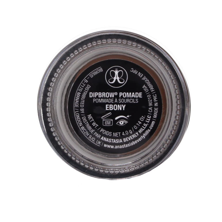 | How To Apply | Dipbrow is best applied with Anastasia Beverly Hills Brush 12, an angled brow brush with short, stiff bristles. You can easily outline and fill a perfect eyebrow. After applying the desired amount of color, be sure to blend with the clean spooley end of Brush 12. Never apply the pomade by directly putting your brush into the pot and applying the product on your brows. To ensure you have the perfect amount needed for application, dip your brush into the pot and swipe it across the inside of the cap – this will allow you to remove excess product, or collect more as-needed. |