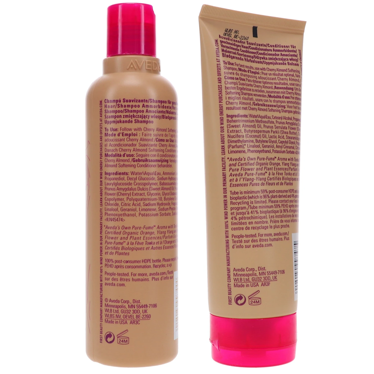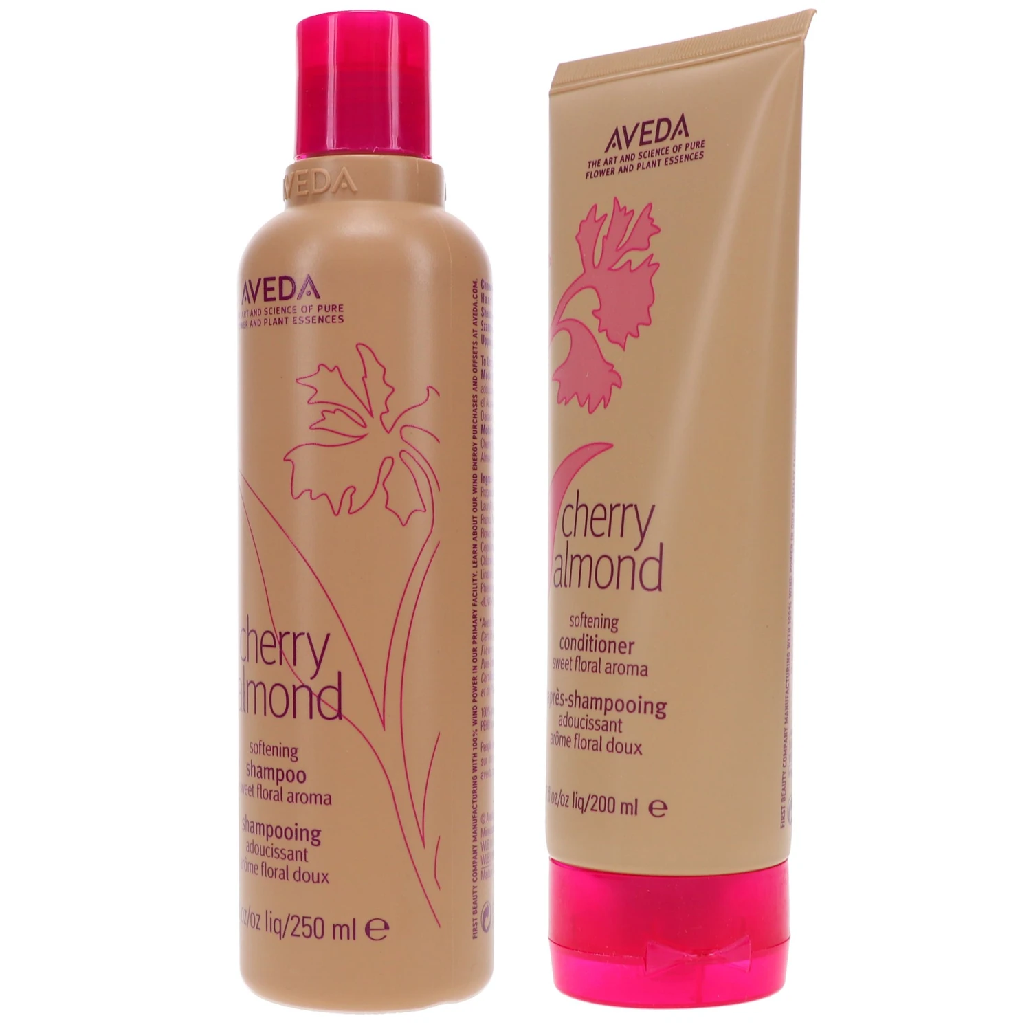 Work Cherry Almond Softening shampoo through scalp and strands and rinse. Massage Cherry Almond Softening Conditioner into wet hair before rinsing. Both formulas feature the enticing aromas of orange, tonka bean and ylang ylang blended with an assortment of botanical essences. These vegan products are free of gluten and silicone.