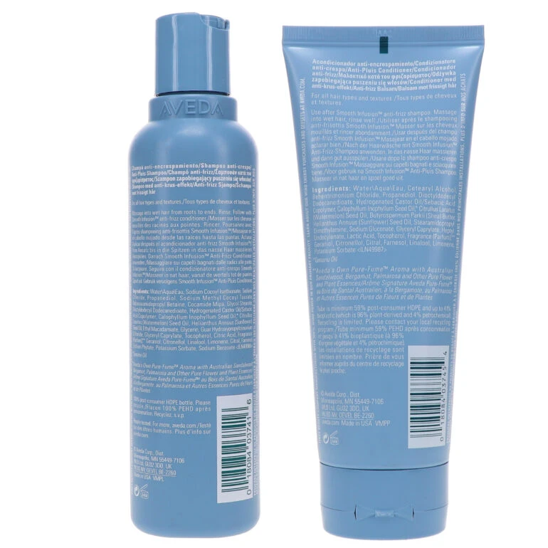 Introducing Aveda’s Smooth Infusion Anti-Frizz Shampoo – the revolutionary, silicone-free shampoo that promises to smooth out and fight the frizz your hair has been faced with. Our vegan formula uses a plant polymer shield and botanical smoothing oil blend to keep humidity away and make sure your hair is kept extra sleek, shiny and moisturized. Free from harsh ingredients such as parabens, mineral oil, petrolatum, paraffin, gluten, formaldehyde donors and its donors, sodium lauryl sulfate (SLS), sodium laureth sulfate (SLES), triclosan, triclocarban and synthetic fragrances – you can feel confident knowing you’re using a safe product on your beautiful locks. Give yourself a salon-style finish without the fuss–our Smooth Infusion Anti-Frizz Shampoo will have your hair feeling smoother than ever before!