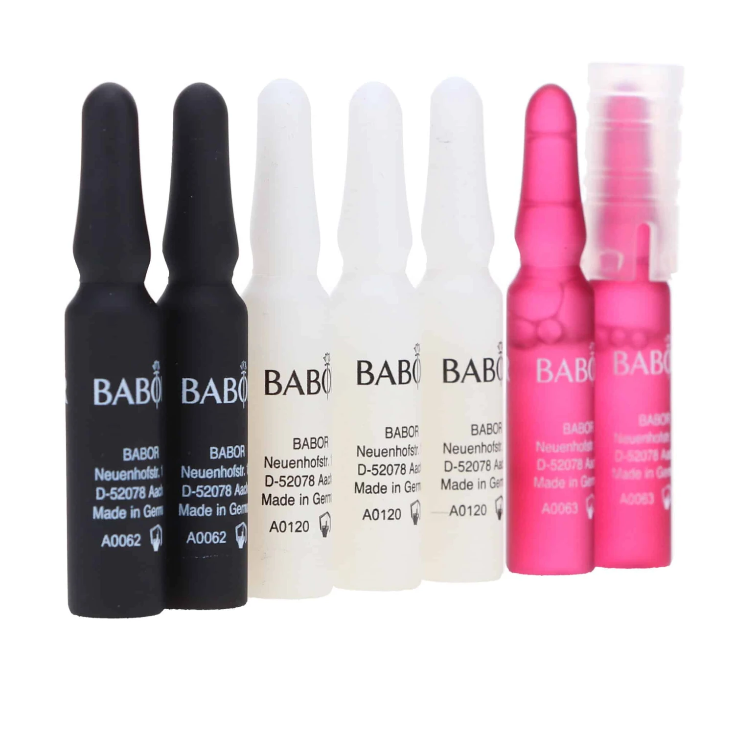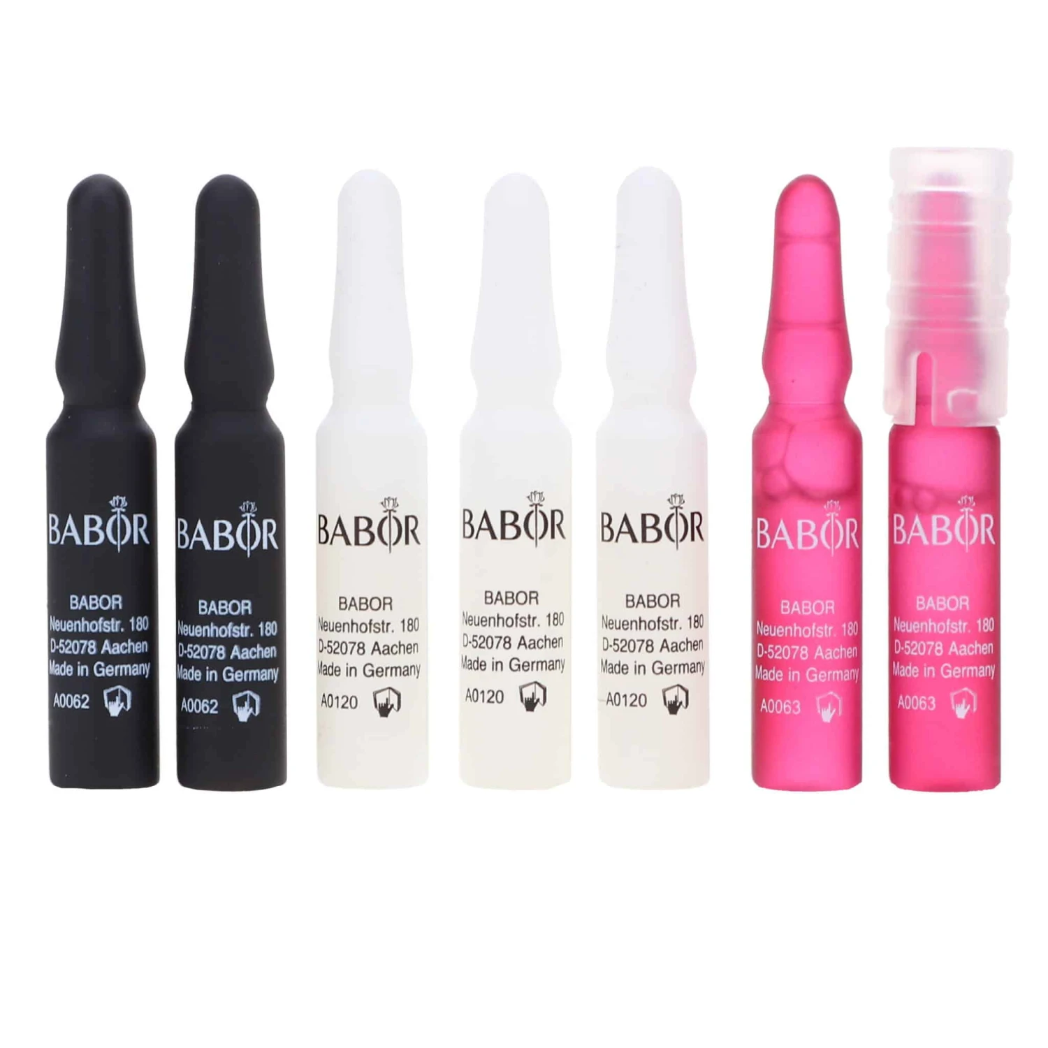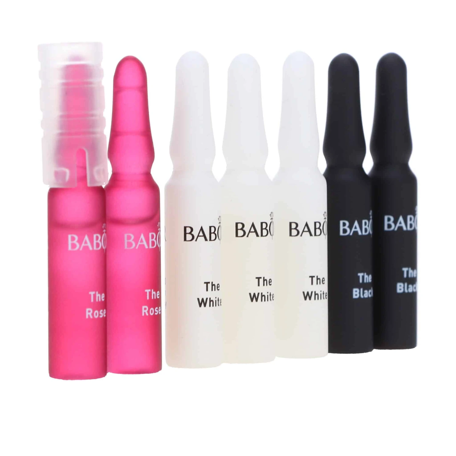 | How To Apply | The Grand Cru ampoules offer the ultimate anti-aging experience in 3 steps over 7 days. The skin is regenerated, refined and protected by the ampoule treatment in a 3-step system Step 1: GRAND CRU The Rose – ultimate skin rejuvenation with regenerating properties and instant effect Step 2: GRAND CRU The White – ultimate youthful radiance thanks to improved skin structure Step 3: GRAND CRU The Black – ultimate protection against premature, environmentally induced skin aging After cleansing with BABOR CLEANSING products. Shake the ampoule and cover the ampoule neck with a tissue or the enclosed ampoule opener. Hold the ampoule by the ampoule neck or opener and break it open with a sudden jerking movement on the lower, colored ring. Pour concentrate into the palm of your hand and work into face, neck and décolleté. Gently pat into the skin. Then apply skincare cream. |