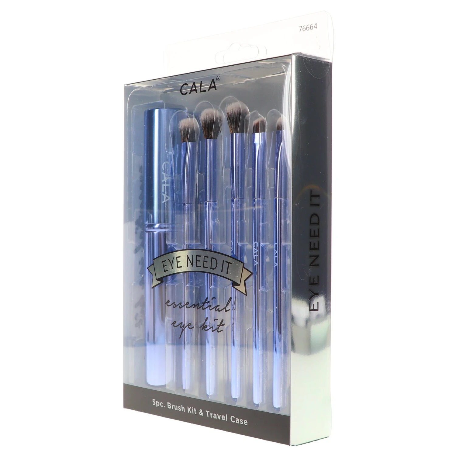 The CALA Eye Need It Brush Kit Lavender is a five-piece makeup brush kit. This set contains an eye shadow brush, tapered blending brush, blending brush, angled brow brush and smudge brush.