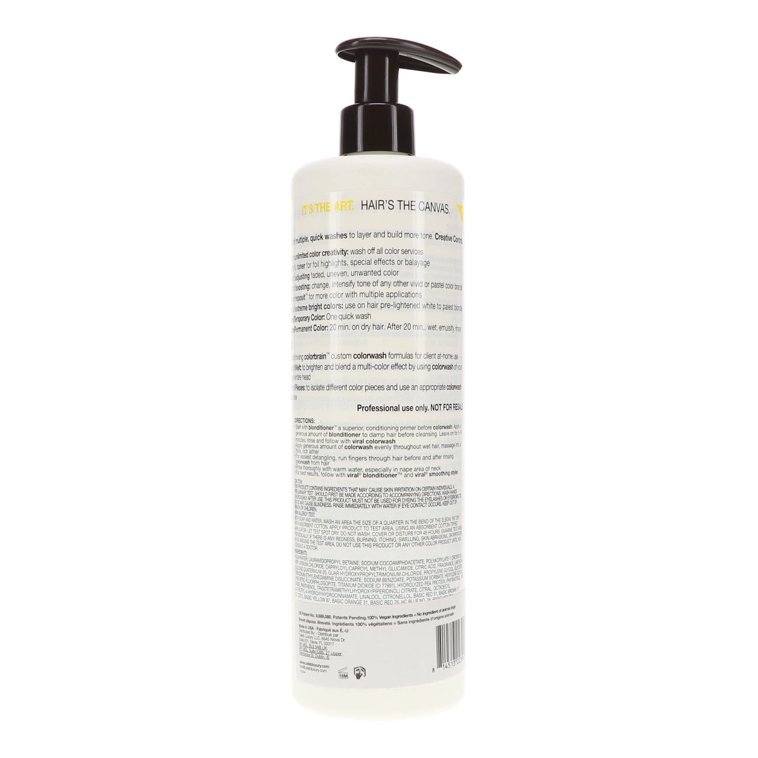 | Ingredients | Aqua, Water, Lauramidopropyl Betaine, Sodium Cocoamphoacetate, Polyacrylate-1 Crosspolymer, Sodium Chloride, Capryloyl, Caproyl Methyl Glucamide, Citric Acid, Fragrance, Limonene, Silicone Quaternium-20, Guar Hydroxypropyltrimonium Chloride, Propylene Glycol, Glycerin, Trisodium Ethylenediamine Disuccinate, Sodium Benzoate, Potassium Sorbate, Hexylene Glycol, Synthetic Fluorphlogopite, Titanium Dioxide, CI 77891, Hydrolyzed Pea Protein, Phytantriol, Tin Oxide, Panthenol, Tris(Tetramethylhydroxypiperidinol, Citrate, Citral, Octadecyl Di-t-butyl-4-hydroxyhydrocinnamate, Linalool, Citronellol, Basic Red 51, Basic Brown 17, CI 12251, Basic Yellow 87, Basic Orange 31, Basic Red 76, HC Blue No. 16, Basic Violet 2, BCC12-Base. |