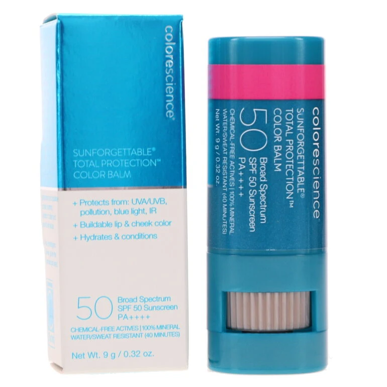 Colorescience Sunforgettable Total Protection Color Balm SPF 50 – Shade: Berry – 0.32 oz – use this exceptional lip and cheek balm to add accent color and bring out your facial contours. The product protects against premature aging. It contains a mineral sunscreen that protects from both UVA and UVB radiation. It also protects your skin from environmental damage, blue light and infrared radiation. JoJoba esters and squalene effectively hydrate your skin. The formulation is non- comedogenic, oil- free and gluten- free