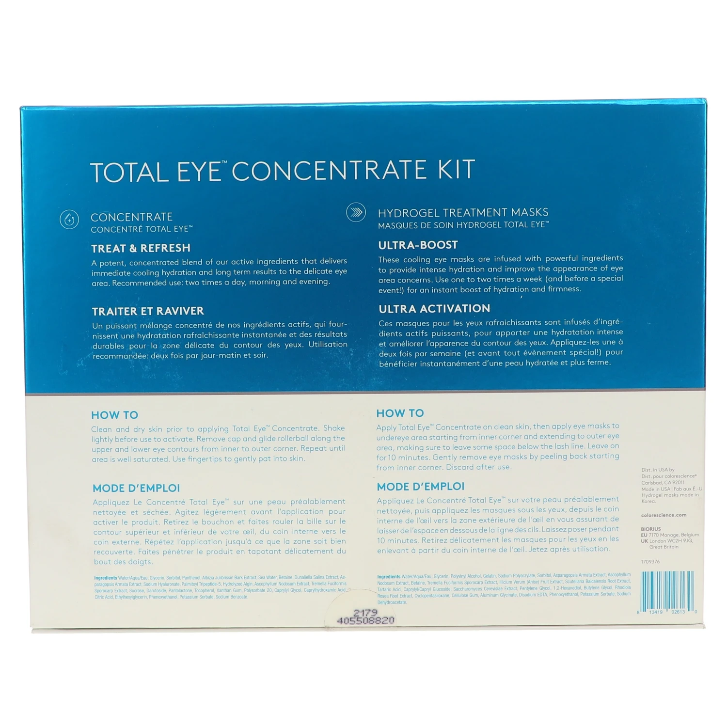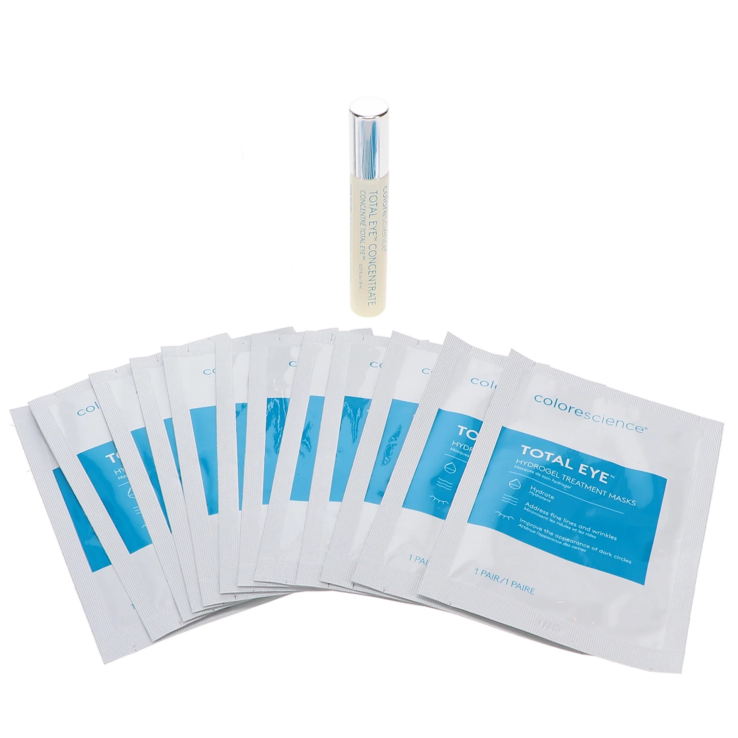 Both products also include a mixture of two polysaccharides that promote healthy capillaries. This also minimizes puffiness and lowers the pigmentation that leads to dark under eye circles. Total Eye® Concentrate and Total Eye® Hydrogel Treatment Masks hydrate the skin, as well.