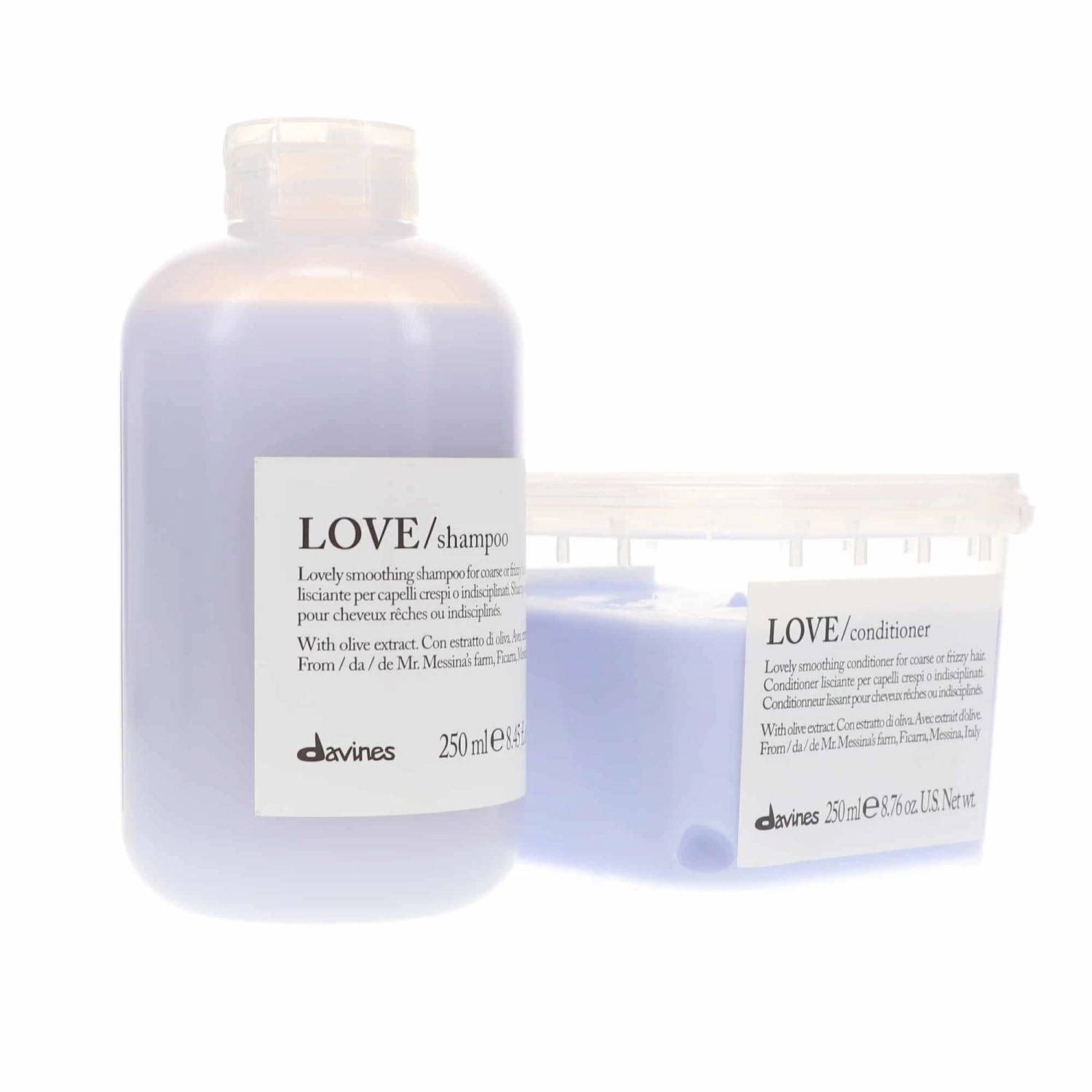 LOVE conditioner provides intense hydration that transforms unruly curls and unsightly frizz into smooth, manageable strands. The duo relaxes and calms frizz thanks to minuta olive extract, which is packed with healthful vitamin E and fatty acids.
