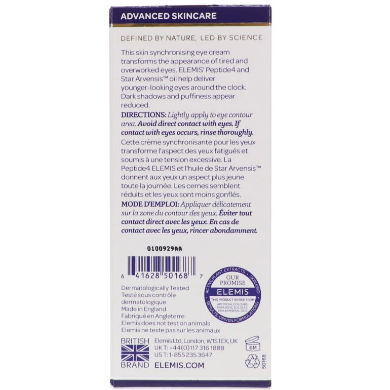 ELEMIS Peptide_ Eye Recovery Cream, 0.5 oz. is the best eye cream to revive the look of fine lines and undereye bags. Peptide_ gently transforms the look of tired eyes by firming skin and reducing puffiness. It is specially designed to smooth skin’s texture and restore moisture. Leaves skin feeling noticeably refreshed.