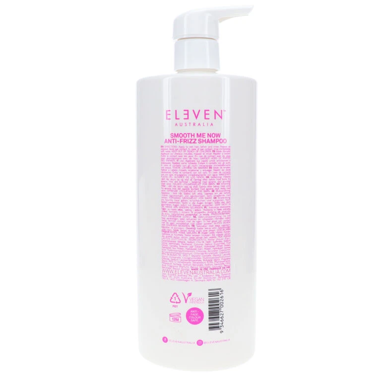 ELEVEN Australia Smooth Me Now Anti-Frizz Shampoo is the perfect solution for thick and coarse hair. Our high concentration of nourishing ingredients tackle two primary contributors to frizz: damage and dryness. Our unique formulation reinforces structural integrity of hair with protein, while retaining moisture from within the strands producing smooth, straight locks without sacrificing healthy shine. With an easy application process—simply wet your hair, lather ELEVEN Australia Smooth Me Now Anti-Frizz Shampoo, rinse and repeat depending on your desired results— you get lusciously silky hair within moments! For those looking to create a professional look that won’t let them down during work or out on the town, this shampoo is tailor-made just for you.