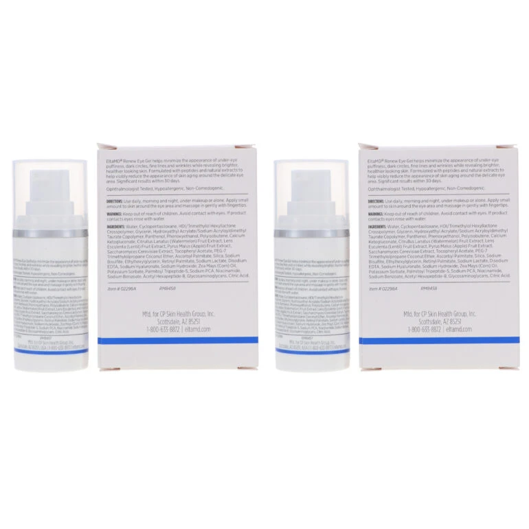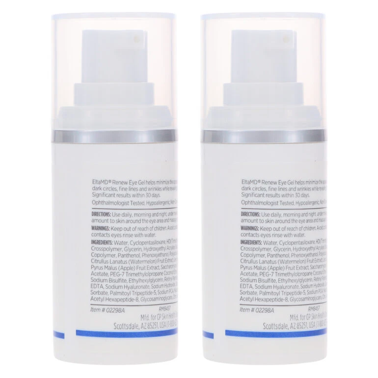 | How To Apply | Use EltaMD Renew Eye Gel every morning under makeup or alone. Reapply to clean skin at night. Apply a small amount to the skin around the eye area and massage in gently with fingertips. |