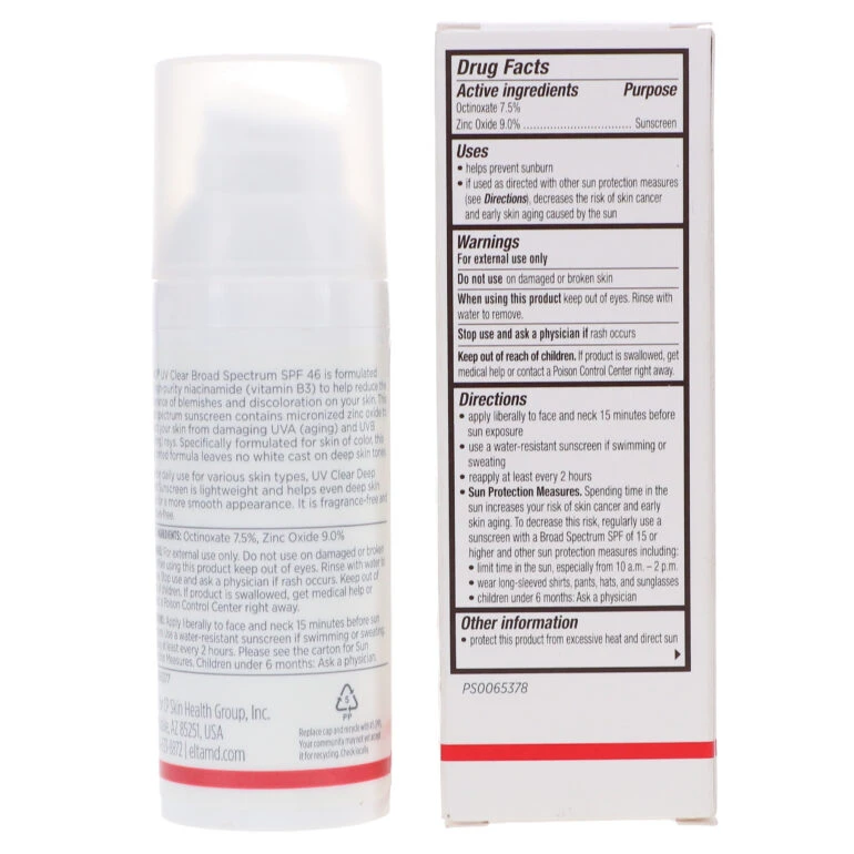Simple EltaMD UV Clear Deep Tinted Broad Spectrum Facial Sunscreen SPF 46 1.7 Oz