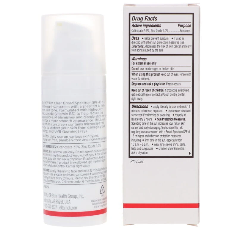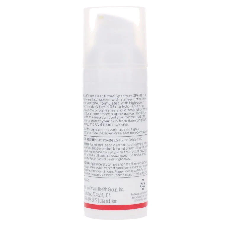 Treat your skin the way it deserves to be treated with EltaMD UV Clear SPF 46 tinted sunscreen with zinc oxide, ideal for sensitive skin. This lightweight sunscreen provides broad-spectrum SPF 46 protection for both UVA and UVB radiation. It is easily worn with or without makeup and its silky formula – fragrance-, oil- and paraben-free – leaves no residue and will not irritate sensitive skin. Apply regularly and liberally, across the face and neck, 15 minutes before sun exposure for the most effective protection, with further application every 2 hours as needed.