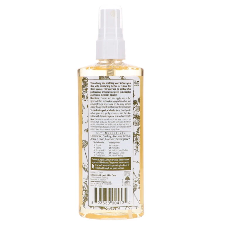 Get ready to experience the ultimate in skin pampering! Eminence Organic Skin Care’s Soothing Chamomile Tonique is a luxurious, soothing blend of organic botanicals that help promote a calm and healthy complexion. This gentle formula helps even skin tone and improves hydration, leaving your skin feeling refreshed and smooth. Soothing Chamomile Tonique also provides natural protection from damaging environmental elements, making it a must-have for anyone looking to ensure their skin stays healthy and bright. With its 100% vegan, nut-free, gluten-free, and soy-free ingredients, Soothing Chamomile Tonique is perfect for all skin types. Use this tonique after a facial peel or as a stand-alone treatment to help restore your skin to its best. Try Eminence’s Soothing Chamomile Tonique today for skin that feels refreshed and restored.
