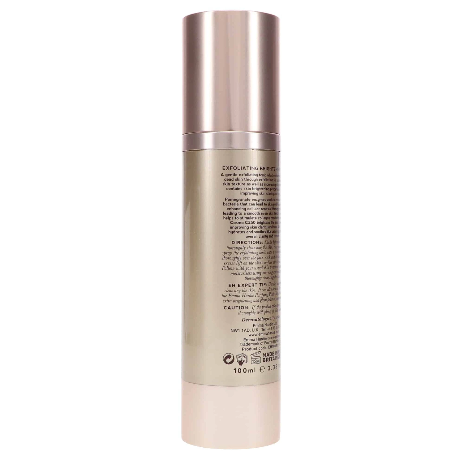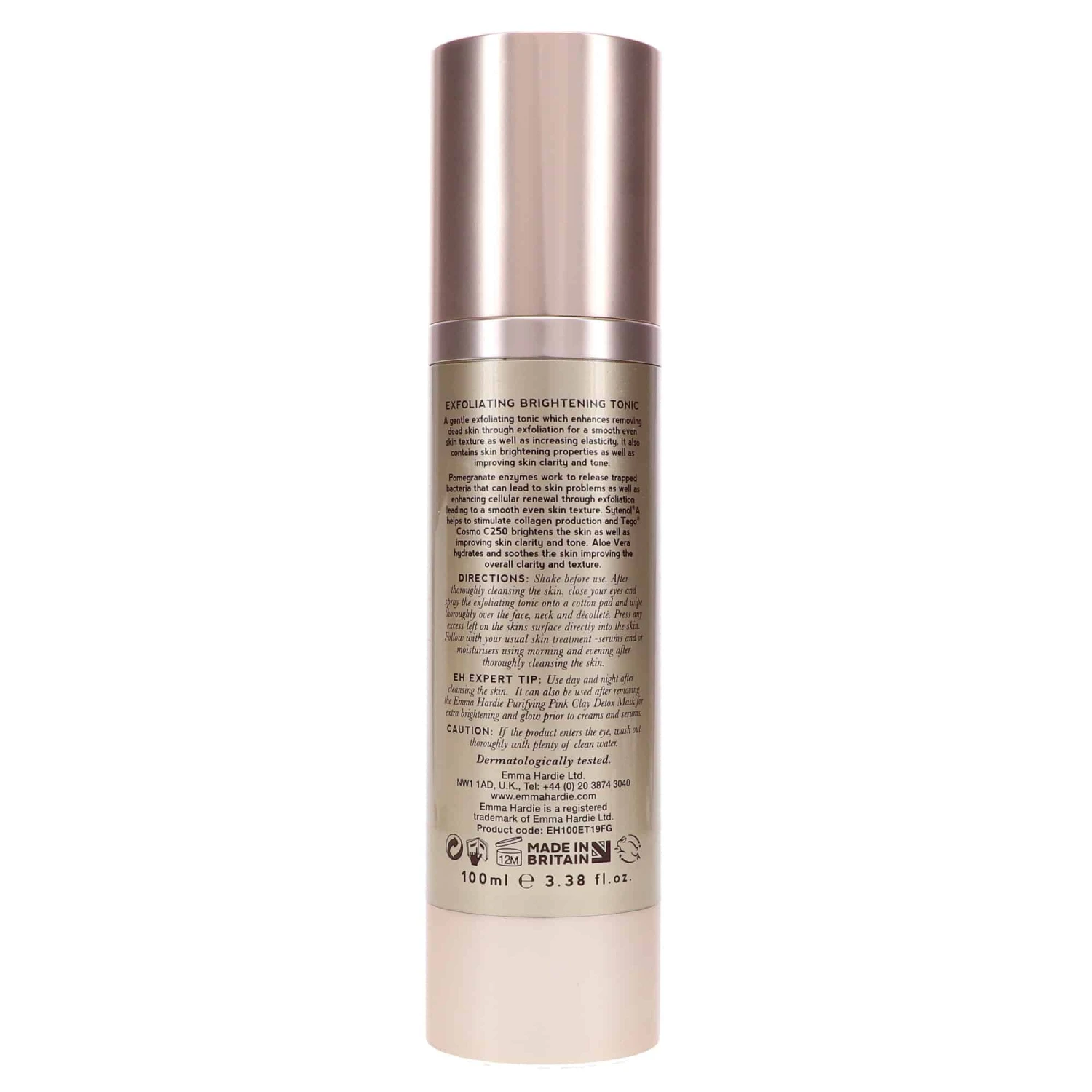 Emma Hardie Exfoliating Brightening Tonic is a gentle exfoliating product that will remove impurities and produce a smoother, softer skin texture. The skin brightening qualities will improve a dull complexion and enhance skin clarity. Aloe vera serves to calm and soothe the skin. Trapped bacteria are released by Pomegranate enzymes, helping to prevent skin issues. Your collagen production is improved by Sytenol A. The product is paraben-free, synthetic fragrance free, contains no silicones, synthetic colorant free, contains no mineral oil and is also Vegetarian.