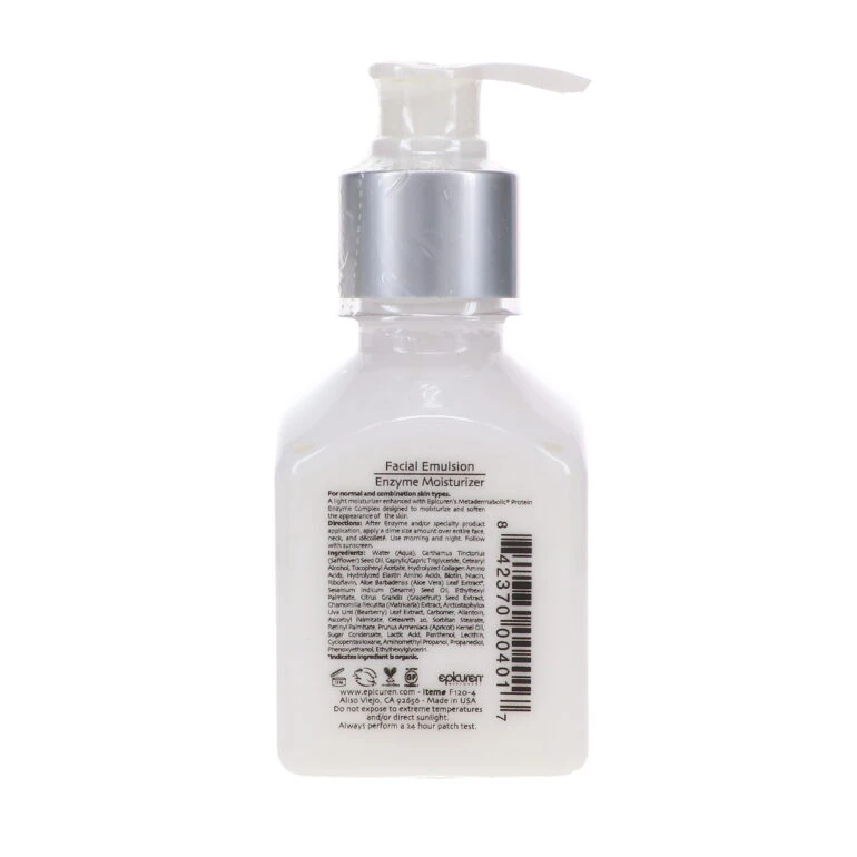 Indulge in the ultimate skin-sational experience with Epicuren Discovery Facial Emulsion Enzyme Moisturizer. This luxurious, light-weight daily moisturizer is enriched with Epicuren’s exclusive Metadermabolic® Protein Enzyme Complex to refresh, revitalize, and rejuvenate your skin.
