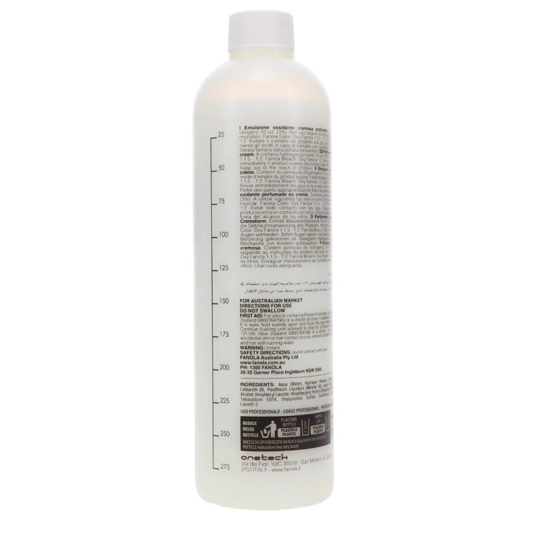 Looking for a hydrating and smoothing oxidant to use with your Fanola hair color? Look no further than Fanola Perfumed Hydrogen Peroxide! This cream-based formula contains active ingredients that moisturize and smooth your strands, making color treatment safe and gentle. Plus, it helps protect against scalp irritation and strengthens your hair to prolong the effects of your color treatment. So why wait? Get your hands on Fanola Perfumed Hydrogen Peroxide today and take your hair care game to the next level!