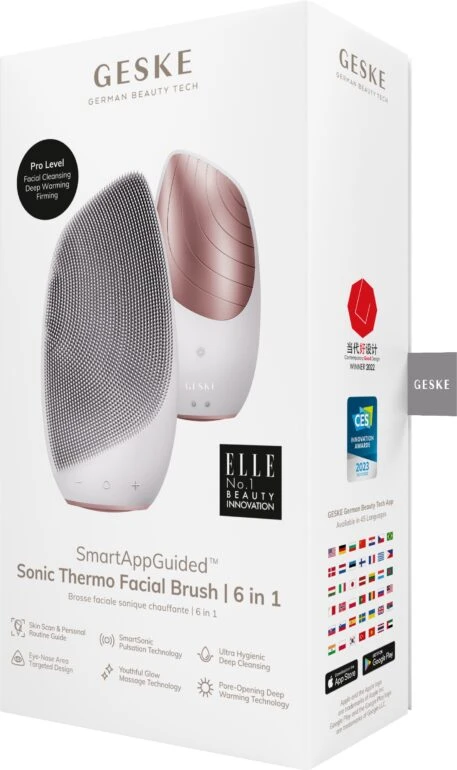 Presenting the ultimate addition to your skincare routine – the GESKE Sonic Thermo Facial Brush 6 in 1! This revolutionary device combines cleansing, pore shrinking, skin scrubbing, and massaging capabilities to give you instant results and a smooth, glowing complexion.