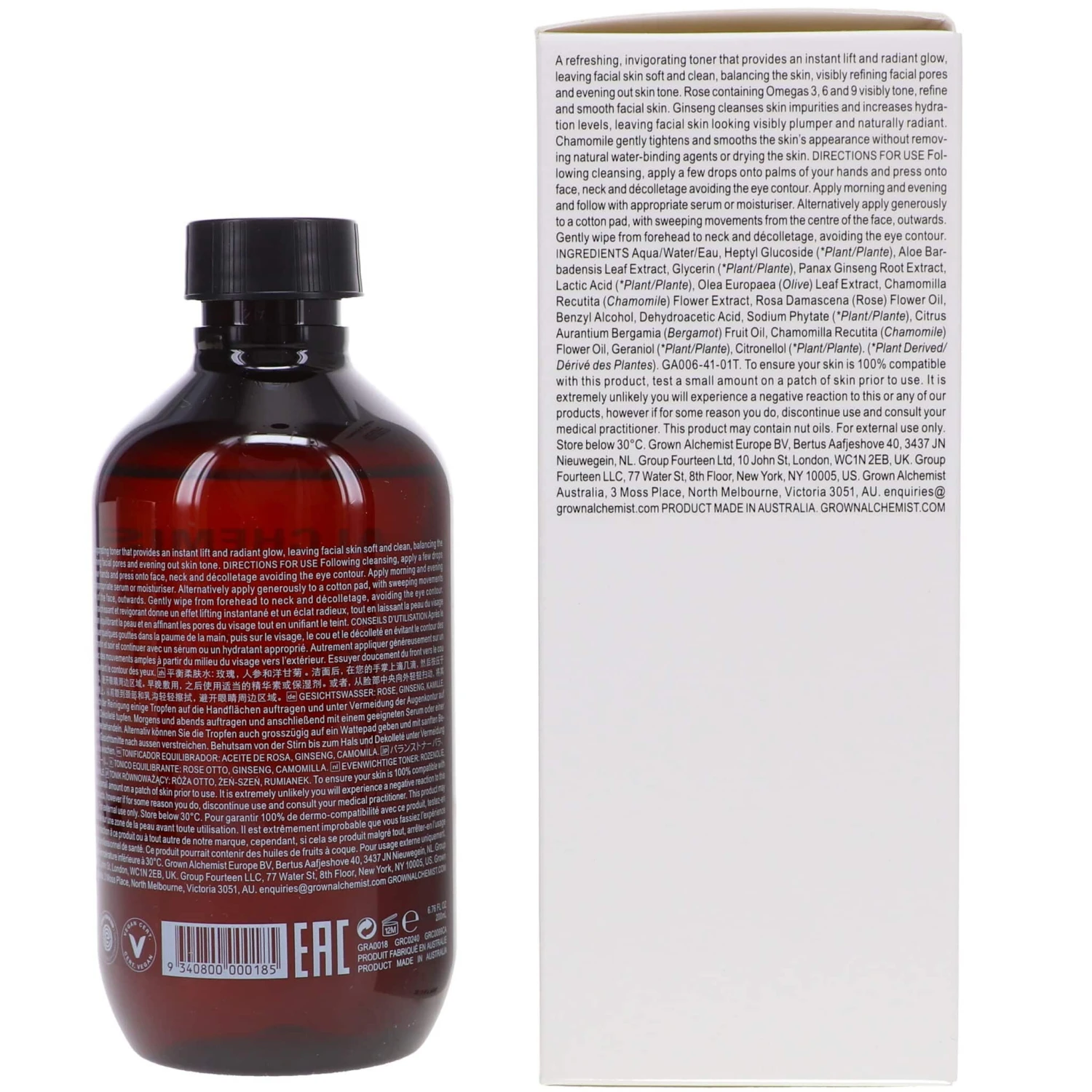 Grown Alchemist Balancing Toner is the perfect addition to your skincare routine for an instantly lifted and radiant complexion. Our toner refreshes skin, balances hydration levels, refines facial pores and helps even out skin tone. To use, simply apply a few drops directly onto the palms of your hands and press onto face, neck and décolletage avoiding the eye contour, or apply generously to a cotton pad with sweeping movements from the center of the face, outwards. Feel pampered in sheer luxury with Grown Alchemist’s amber bottle filled with spa-grade cleansing formulas for hands, face and body that are infused with fragrant scents designed to soothe your skin and relax your mind. For optimal skin health, it is important to treat it both from the outside and inside, which is why Grown Alchemist blends these philosophies into their beauty line. Get healthier looking skin today with Grown Alchemist Balancing Toner!