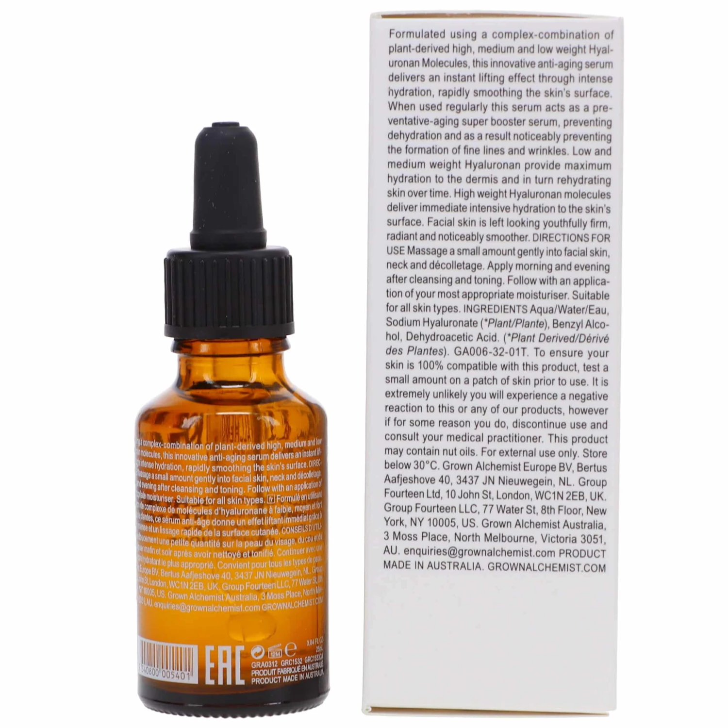 Introducing Grown Alchemist Instant Smoothing Serum, an innovative anti-aging serum made from plant-derived molecules and designed to deliver an instant lifting effect. Through intense hydration, this serum rapidly smoothes the skin’s surface to leave you with a youthful complexion. To get optimal effects, simply apply a small amount of the serum onto facial skin, neck, and décolletage each morning and evening after cleansing and toning.