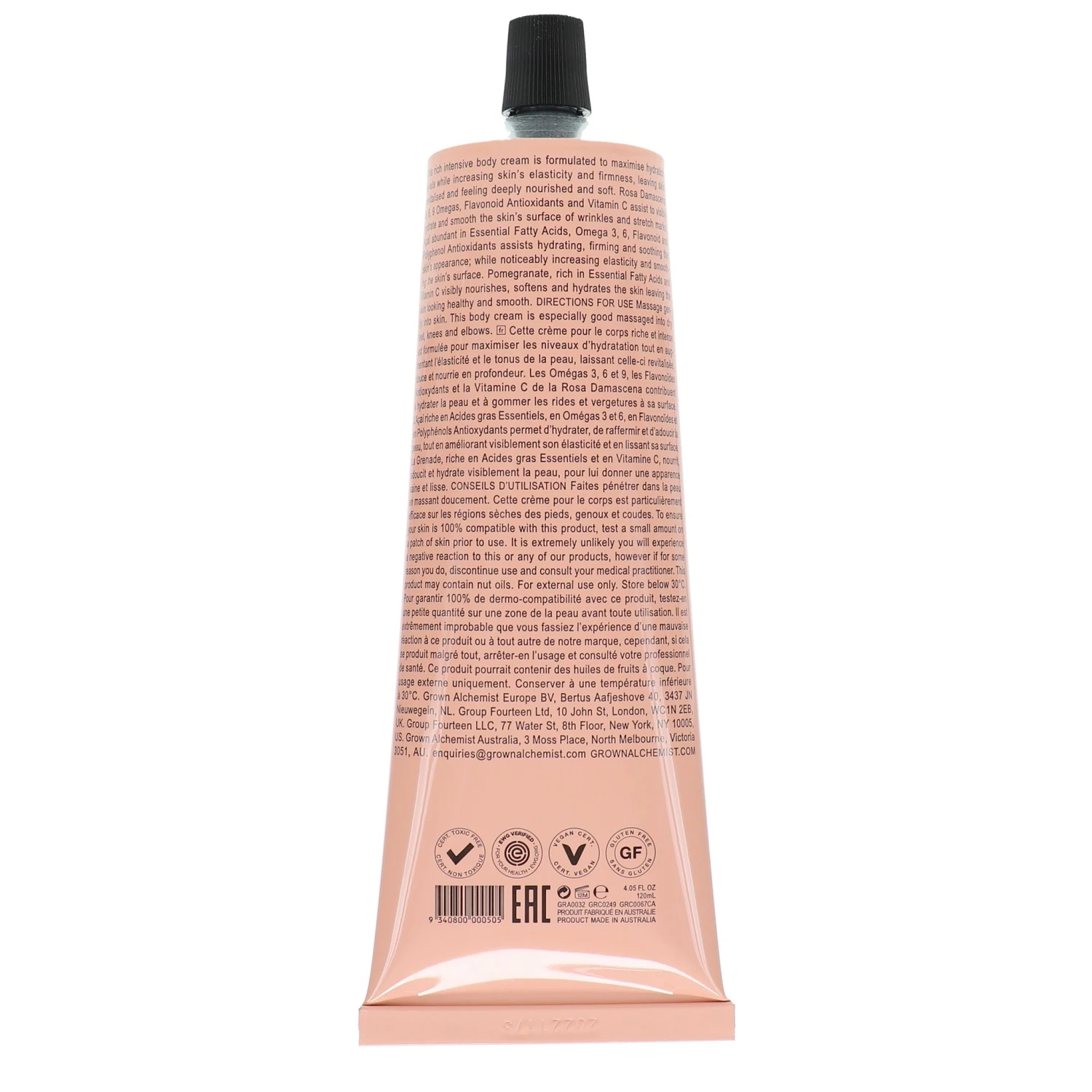 Give your skin the nourishment it needs with Grown Alchemist Intensive Body Cream. Our deeply hydrating body cream is formulated with potent bioactive ingredients that work to balance, hydrate, and revitalize for youthful and glowing skin. Rosa damascena, Acai, and Pomegranate give your skin the ultimate boost of antioxidant-rich skincare to restore its natural glow.