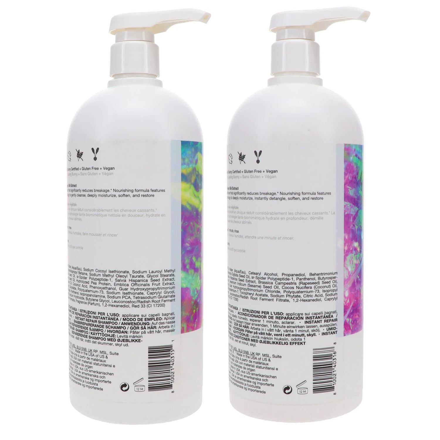 | Ingredients | shampoo: Water (Aqua/Eau), Sodium Cocoyl Isethionate, Sodium Lauroyl Methyl Isethionate, Cocamide MIPA, Cocamidopropyl Betaine, Sodium Methyl Oleoyl Taurate, Glycol Stearate, Propanediol, Adansonia Digitata Seed Oil, sr-Spider Polypeptide-1, Salvia Hispanica Seed Extract, Brassica Campestris (Rapeseed) Seed Oil, Hydrolyzed Pea Protein, Emblica Officinalis Fruit Extract, Sesamum Indicum (Sesame) Seed Oil, Coconut Acid, Phenoxyethanol, Guar Hydroxypropyltrimonium Chloride, Coco-Glucoside, Lauryl Glucoside, Polyquaternium-73, Sodium Isethionate, Caprylyl Glycol, Ethylhexylglycerin, Sodium Benzoate, Panthenol, Isopropanolamine, Sodium PCA, Tetrasodium Glutamate Diacetate, Citric Acid, Tocopherol, Sodium Hydroxide, Butylene Glycol, Leuconostoc/Radish Root Ferment Filtrate, Sodium Glycolate, Sodium Formate, Fragrance (Parfum), 1,2-Hexanediol, Red 33 (CI 17200). conditioner: Water (Aqua/Eau), Cetearyl Alcohol, Propanediol, Behentrimonium Chloride, Isoamyl Laurate, Adansonia Digitata Seed Oil, sr-Spider Polypeptide-1, Panthenol, Butyrospermum Parkii (Shea) Butter, Salvia Hispanica Seed Extract, Brassica Campestris (Rapeseed) Seed Oil, Emblica Officinalis Fruit Extract, Sesamum Indicum (Sesame) Seed Oil, Cocos Nucifera (Coconut) Oil, Phenoxyethanol, Hydroxypropyl Guar Hydroxypropyltrimonium Chloride, Polyquaternium-73, Isopropyl Alcohol, Ethylhexylglycerin, Polyquaternium-7, Tocopheryl Acetate, Sodium Phytate, Citric Acid, Sodium Benzoate, Alcohol, Tocopherol, Leuconostoc/Radish Root Ferment Filtrate, 1,2-Hexanediol, Caprylyl Glycol, Fragrance (Parfum), Red 33 (CI 17200). |