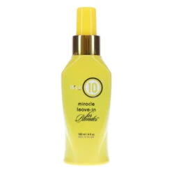 Whether your blond locks are all natural or color treated, they’re sure to benefit from the brightening power of It’s a 10 Miracle Blonde Leave-In. This unique product is expertly engineered to be the perfect addition to those light locks, boosting brightness and reducing brassy tones simultaneously after effortless application.