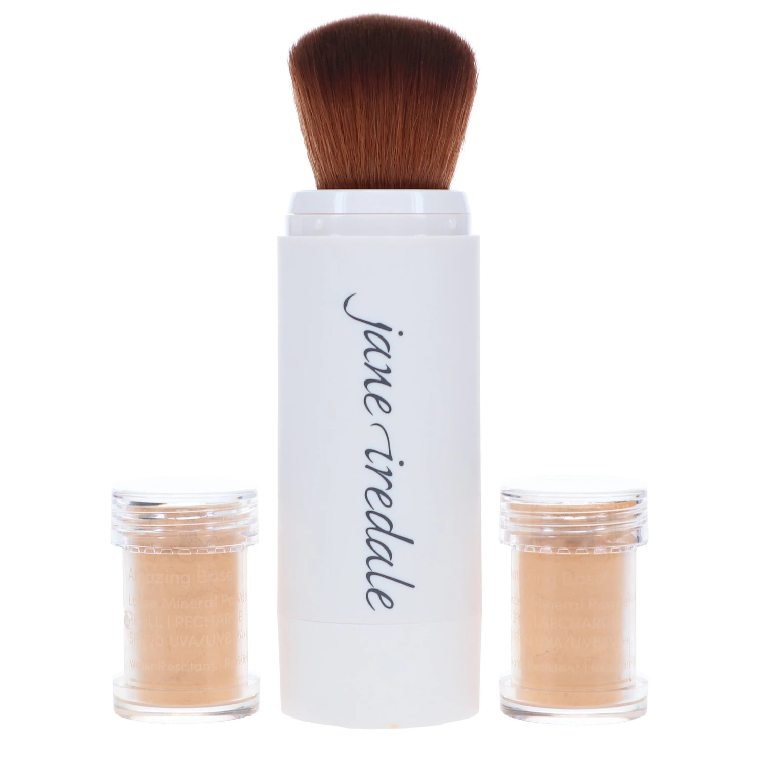 Get flawless coverage with the jane iredale Amazing Base Loose Mineral Powder Refillable Brush! This airy loose mineral foundation is perfect for a luminous finish that will last all day long. With broad spectrum sun protection, this brush features vegan bristles to apply your makeup with precision. What makes it even better? Plankton, Algae and Pomegranate Extracts protect, hydrate, soothe and nourish your skin at the same time. All you need to do is install refill, remove the brush cap and turn base until it clicks. Shake it upside down to release product- and you’re ready to go! Now you can get gorgeous skin coverage anytime – without worrying about refilling or replacing a traditional make up brush! So what are you waiting for? Get your jane iredale Amazing Base Loose Mineral Powder Refillable Brush today and start enjoying beautiful coverage with superior skincare benefits!
