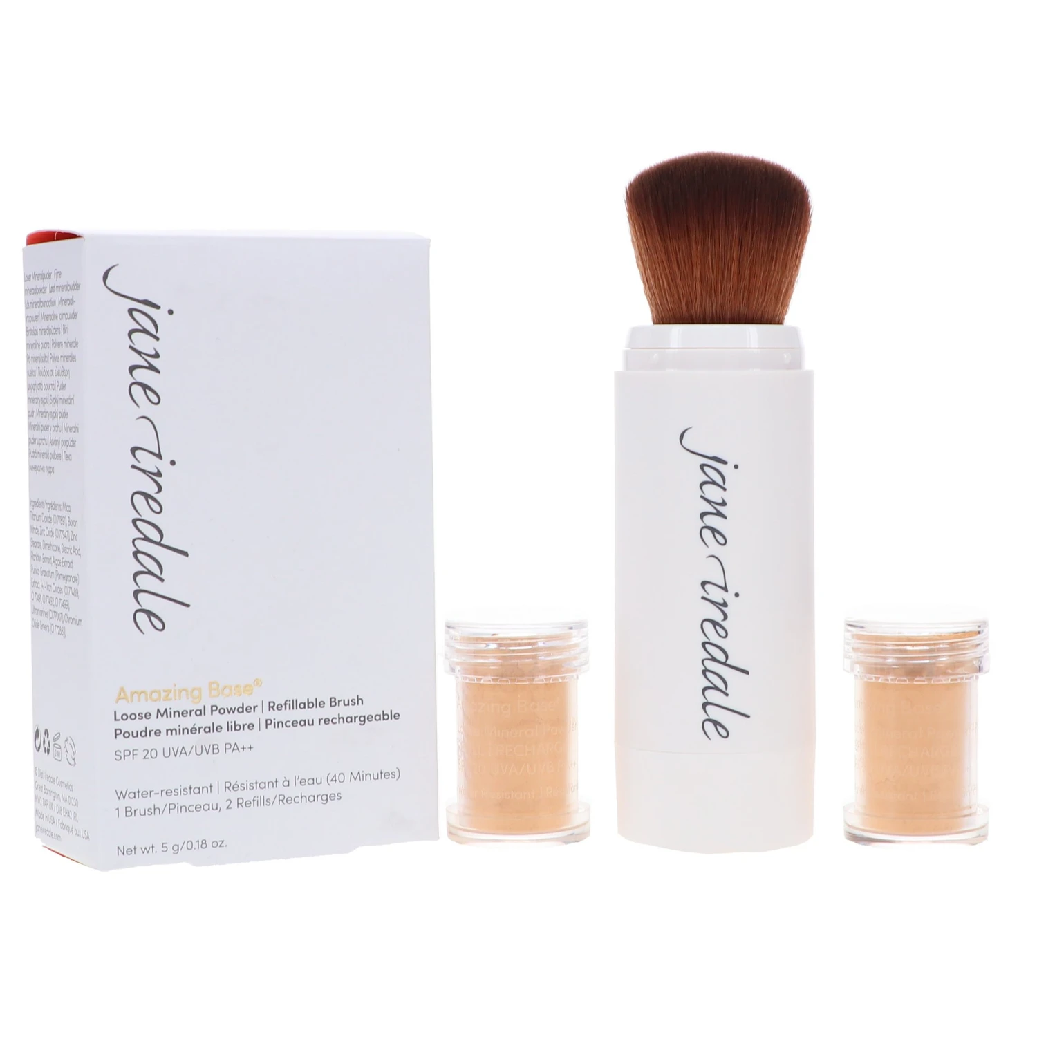 Simple Jane Iredale Amazing Base Loose Mineral Powder Refillable Brush Golden Glow 0.18 Oz