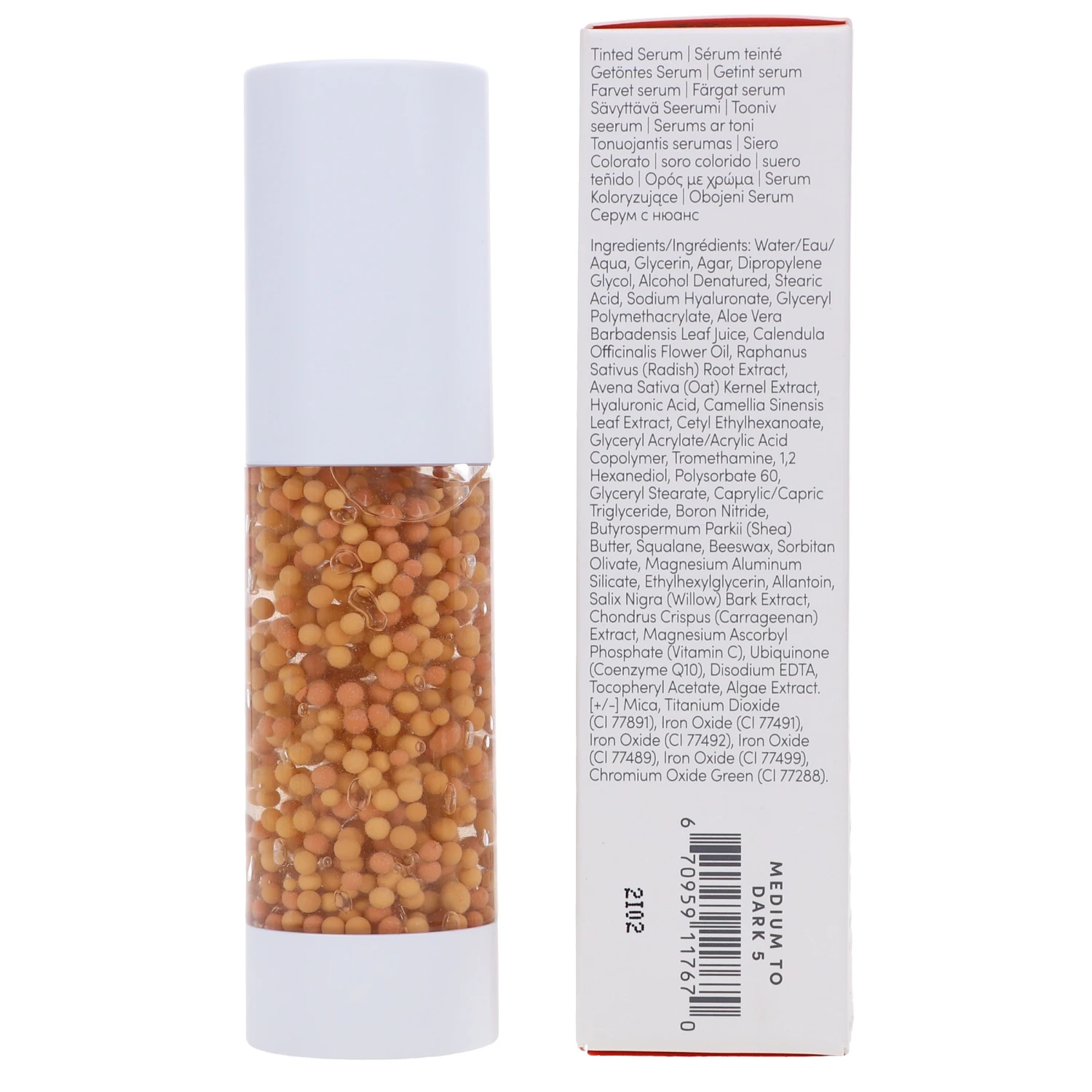 | Ingredients | Water/Eau/Aqua, Glycerin, Agar, Dipropylene Glycol, Alcohol Denatured, Stearic Acid, Sodium Hyaluronate, Glyceryl Polymethacrylate, Aloe Vera Barbadensis Leaf Juice, Calendula Officinalis Flower Oil, Raphanus Sativus (Radish) Root Extract, Avena Sativa (Oat) Kernel Extract, Hyaluronic Acid, Camellia Sinensis Leaf Extract, Cetyl Ethylhexanoate, Glyceryl Acrylate/Acrylic Acid Copolymer, Tromethamine, 1,2 Hexanediol, Polysorbate 60, Glyceryl Stearate, Caprylic/Capric Triglyceride, Boron Nitride, Butyrospermum Parkii (Shea) Butter, Squalane, Beeswax, Sorbitan Olivate, Magnesium Aluminum Silicate, Ethylhexylglycerin, Allantoin, Salix Nigra (Willow) Bark Extract, Chondrus Crispus (Carrageenan) Extract, Magnesium Ascorbyl Phosphate (Vitamin C), Ubiquinone (Coenzyme Q10), Disodium EDTA, Tocopheryl Acetate, Algae Extract. [+/-] Mica, Titanium Dioxide (CI 77891), Iron Oxide (CI 77491), Iron Oxide (CI 77492), Iron Oxide (CI 77489), Iron Oxide (CI 77499), Chromium Oxide Green (CI 77288). |