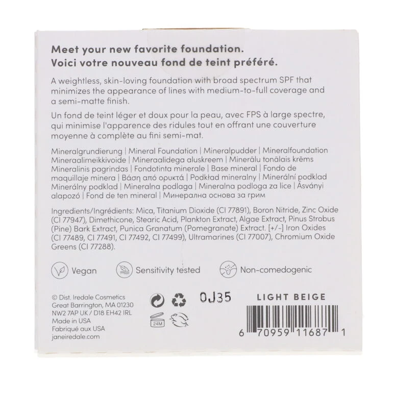 Simple Jane Iredale PurePressed Base Mineral Foundation Refill Light Beige 0.35 Oz