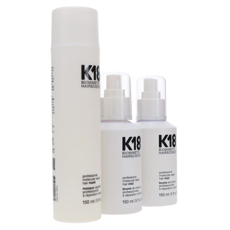 Next, we have the K18 Pro Mask β the ultimate clean-up crew for hair damage caused by bleaching, chemical services, and heat. Like the mist, this leave-in treatment mask is powered by the K18PEPTIDEβ’ and works to renew strength and elasticity in just 4 minutes. But with a pH level of 5.0-6.0, the mask helps to seal in the K18PEPTIDEβ’ by closing down the cuticle, ensuring long-lasting results.