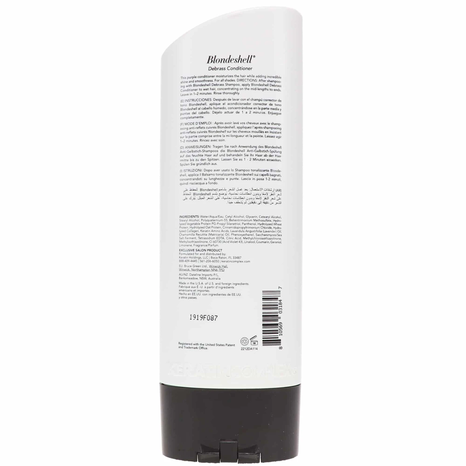 Keep blonde shades true by using Keratin Complex Blondeshell Debrass Conditioner, 33.8 oz. This nourishing hair color conditioner is formulated with keratin and amino acids from a blend of oat and wheat proteins that strengthen strands and preserve the integrity of color-treated and natural blonde tresses.