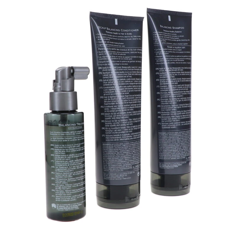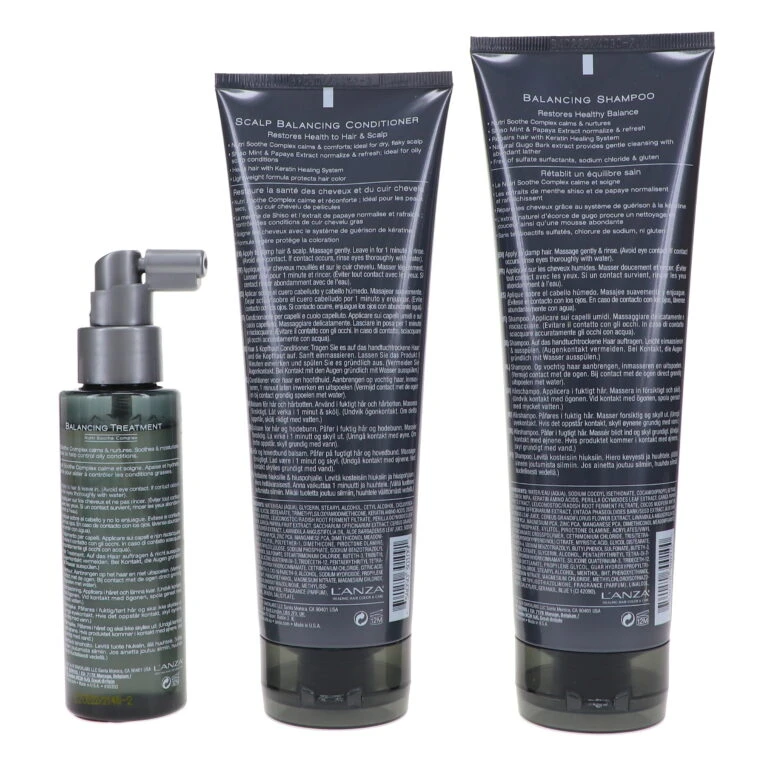 | How To Apply | shampoo: Apply Scalp Balancing Shampoo to wet hair. Massage onto scalp and leave on for up to 5 minutes. Rinse thoroughly. conditioner: After shampooing, apply scalp balancing conditioner generously. Rinse thoroughly. healing treatment: Apply to Scalp Balancing Treatment to scalp twice per day & leave in. (May cause temporary redness and tingling. Avoid contact with eyes. If contact occurs, rinse immediately with water.) |