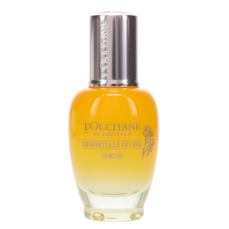 L’Occitane Immortelle Divine Serum firms, reduces the appearance of wrinkles, smooths and brightens your skin. Apply morning and evening to the neck and face area avoiding contact with your eyes. The formulation now features Immortelle Super Extract, a natural and gentler alternative to retinol. Through years of research, L’Occitane developed an eco-friendly extraction technology. This technology harnesses the power of previously untapped anti-aging molecules found in Immortelle. This powerful, concentrated formulation is absorbed fast and efficiently, producing younger looking skin. This lightweight gel-creme results in smoother, firmer, and more vibrant skin and your complexion will look more even and brighter.