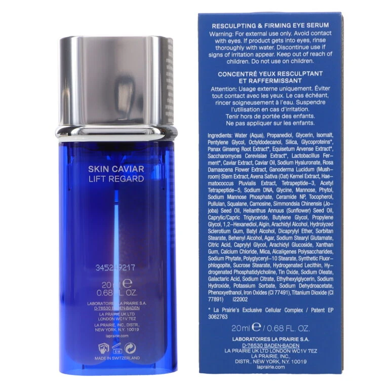| How To Apply | Apply morning and evening prior to eye cream, face serum and face cream application. Slowly press the pump once to release small amount onto fingertip. Follow the application pattern on each eye. Please note: Since the golden beads of the new Skin Caviar Eye Lift naturally vary in size, the pump may not always automatically return to its original position. By lightly pressing the pump trigger up, the product will again fully dispense, without altering the quality and integrity of the formula. |