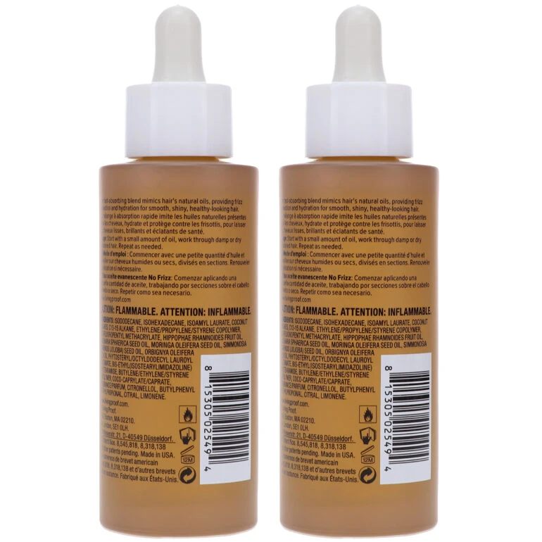 Achieve smooth, hydrated hair with Living Proof’s No Frizz Vanishing Oil. Infused with the innovative Healthy Hair Molecule and a lightweight 5-oil blend that mimics the oils found in healthy hair, this product will tame frizz, flyaways, and static without adding weight or product buildup. Perfect for all types of hair, this oil can be used on both damp and dry tresses to improve manageability and appearance. Start by incorporating a few drops of oil into each section of your hair and work through from root to tip for an unbeatable shine finish. With Living Proof no frizz vanishing oil, you’ll enjoy the smoothness and hydration that comes with naturally healthy looking hair