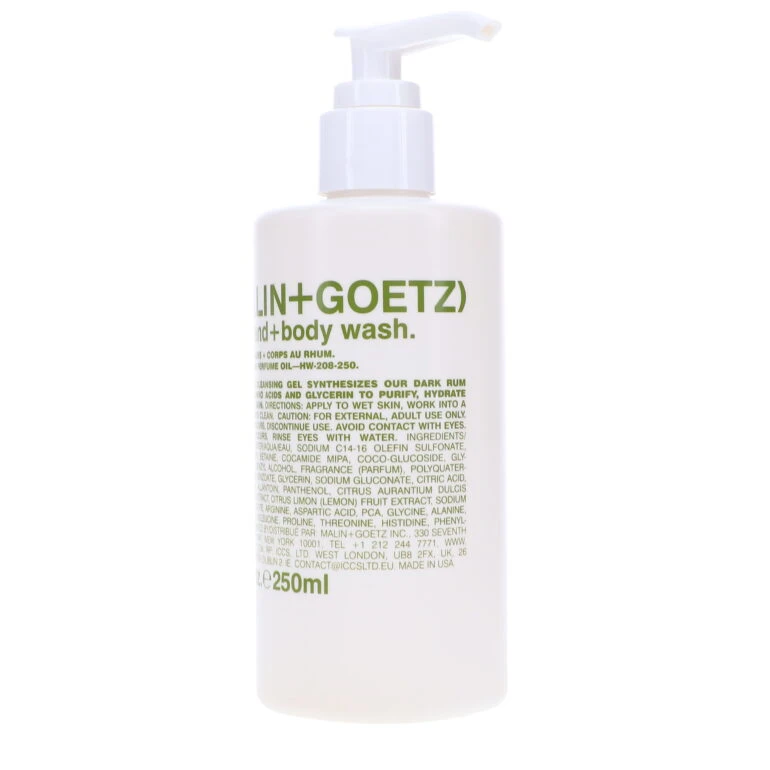 Improve your life by improving your skin care products with Malin+Goetz Rum Hand+Body Wash 8.5 oz. Gone are the days of stressing out your skin while removing dirt and oil. Now your hands and body can enjoy a clean with a sweet and spicy rum scent guaranteed to please.