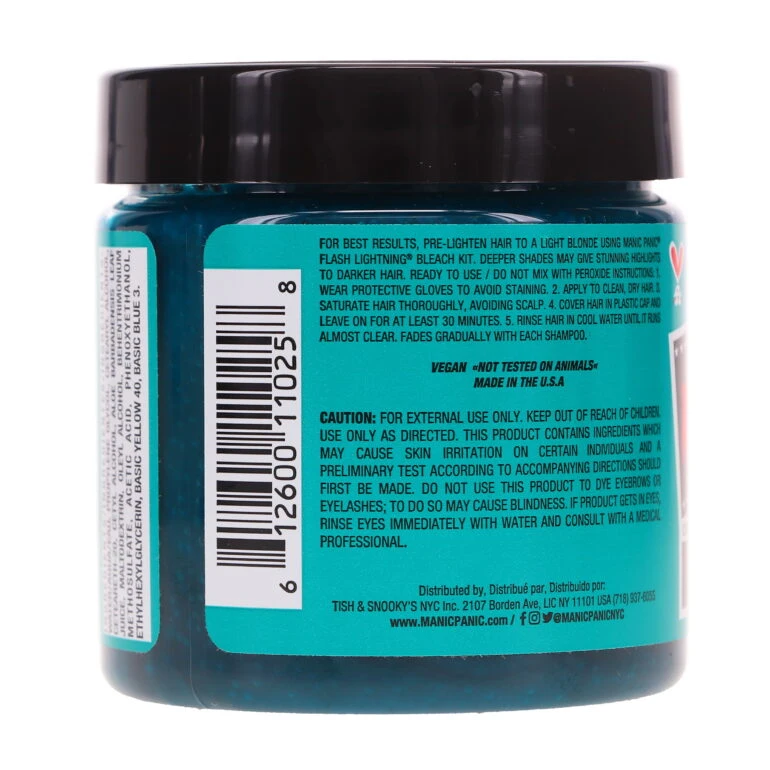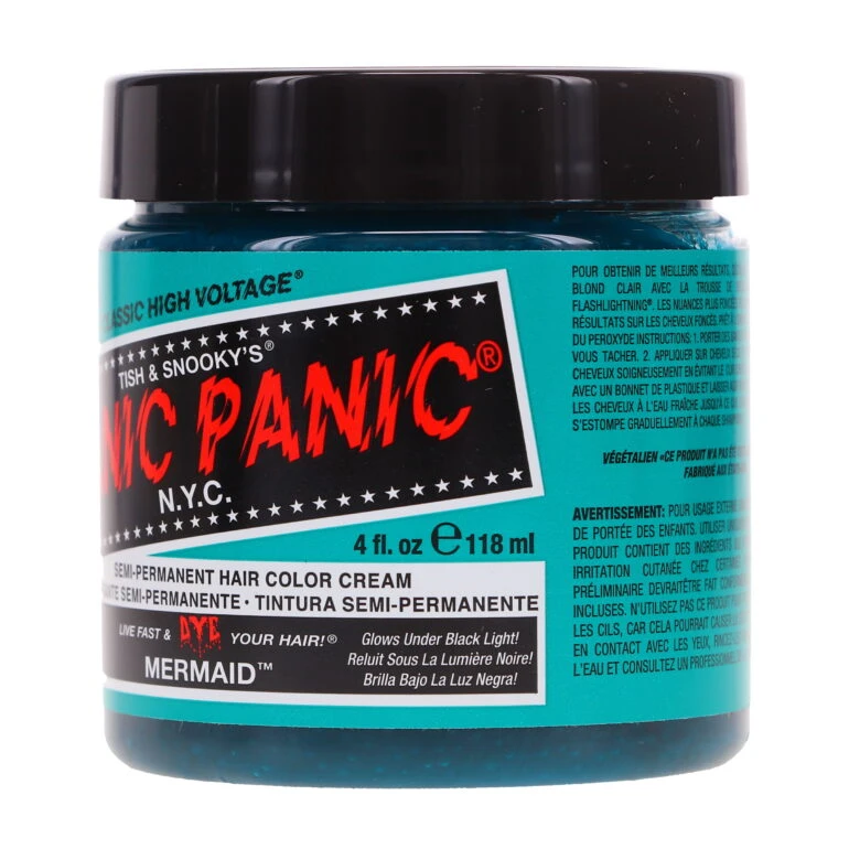 Are you ready to dive into the enchanting world of mermaids? Introducing MANIC PANIC Classic High Voltage Mermaid Hair Dye, a mesmerizing neon cool ocean blue with slightly green undertones that will transform you into a mystical mermaid goddess.