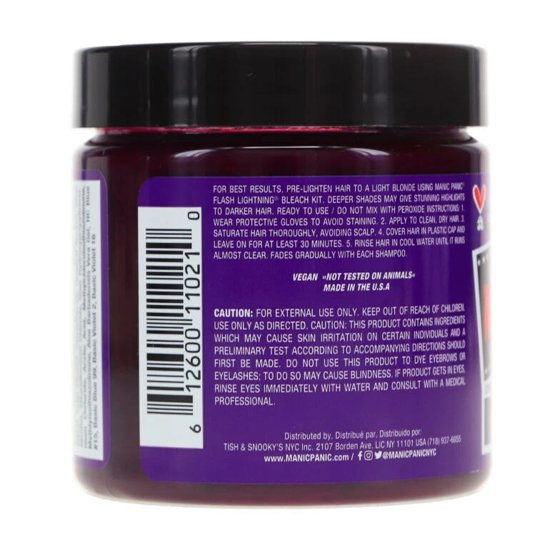 Introducing MANIC PANIC Classic High Voltage Plum Passion, the ultimate solution for those craving a vibrant and captivating look! This Plum Passion Purple Hair Dye Color is not your average hair dye – it’s a gateway to a world of endless possibilities and stunning transformations.