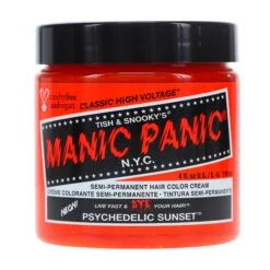 Get ready to embrace a vibrant and electrifying new look with MANIC PANIC Classic High Voltage Psychedelic Sunset hair dye. This radiant fiery orange color will create the warmest, most eye-catching hues in your hair, making you the center of attention wherever you go.