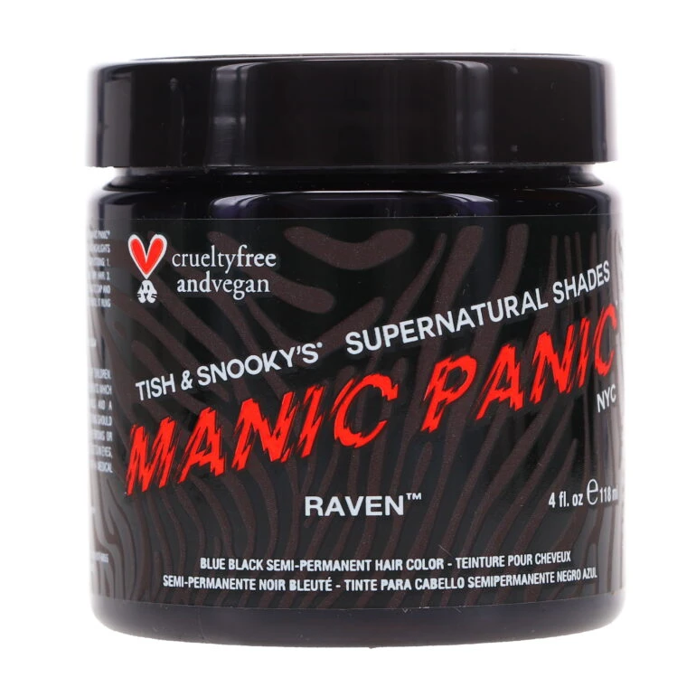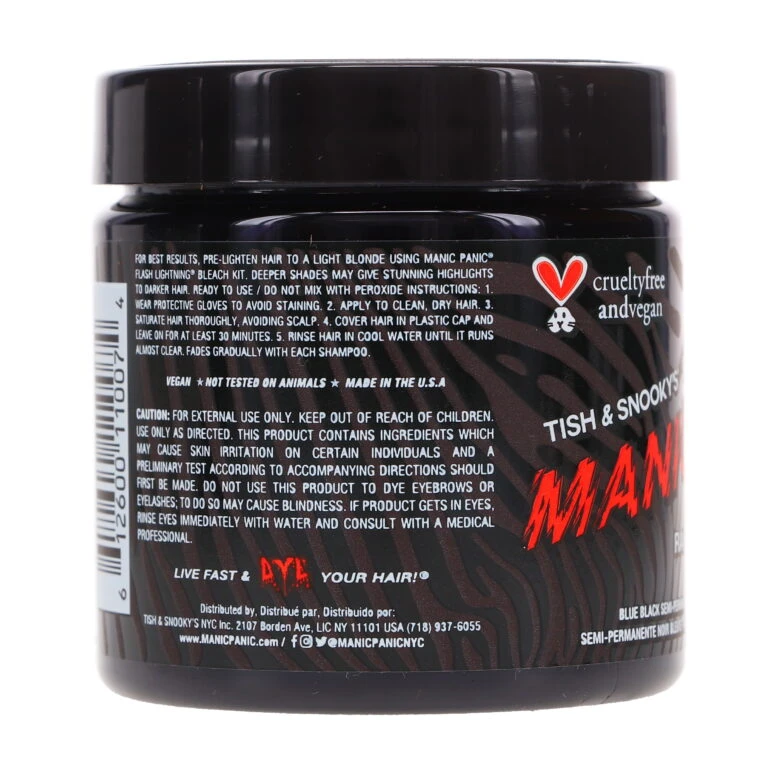 Introducing MANIC PANIC Classic High Voltage Raven – the ultimate cool black hair dye with blue undertones. Create a bold, edgy statement with this unique and alluring shade that will leave you feeling like a total rockstar.