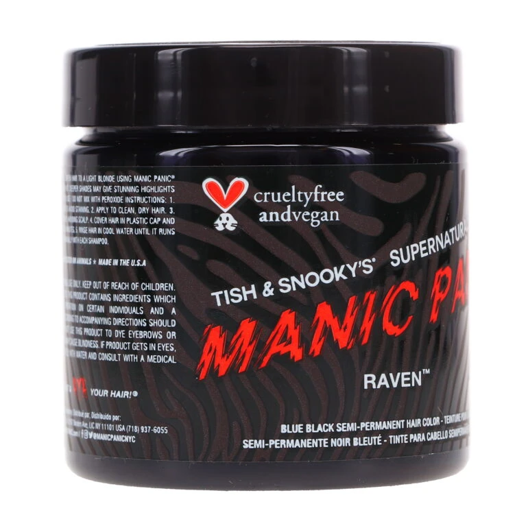 For best results, we recommend lightening your hair to a level six dark blonde before using our Raven hair dye. This will ensure the most vibrant and long-lasting color. But don’t let that limit your creativity – our mixable colors and tones allow you to create custom shades that are as unique as you are. The possibilities are truly endless with MANIC PANIC.