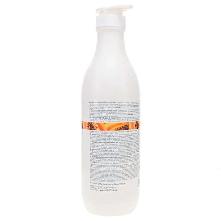 milk_shake® moisture plus shampoo is a rich, creamy shampoo that helps to improve the softness and manageability of dry hair while maintaining the optimal moisture balance. Enriched with organic papaya extract, Integrity 41® and hyaluronic acid, this shampoo helps to protect hair color and fight the signs of aging.