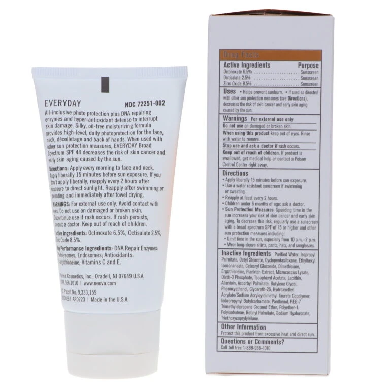 Looking for a sunscreen that does it all? Neova DNA Damage Control Everyday SPF 44 is your one-stop shop for optimal sun protection. This light, moisturizing formula is perfect for all skin types and provides complete coverage from harmful UVA and UVB rays. In addition to its broad-spectrum SPF, Neova DNA Damage Control Everyday SPF 44 also contains a breakthrough DNA repair enzyme technology that helps reduce the visible signs of aging and sun damage. So why settle for anything less than the best? Pick up Neova DNA Damage Control Everyday SPF 44 today and enjoy beautiful, healthy skin all summer long!