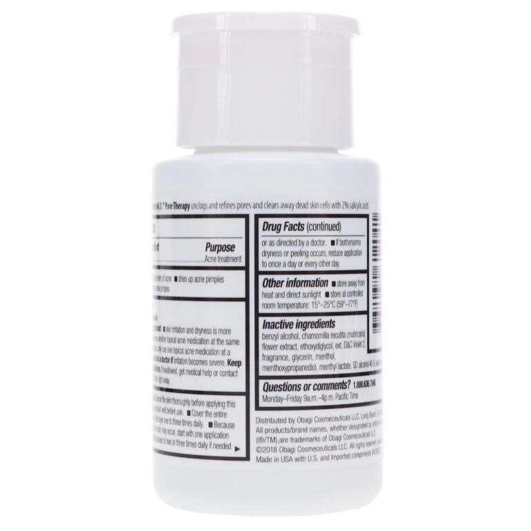 Obagi CLENZIderm Pore Therapy is a facial toner that leaves your complexion completely clean and purifies pores. Dead skin cells that clog pores and prevent the complexion from properly healing are decreased by its exfoliating ingredients. Your acne treatment products will absorb more easily into the skin for improved results by using this toner after your cleanser. Pores appear less noticeable and the complexion appears refined and with Obagi CLENZIderm Pore Therapy. The Obagi skin care line offers uniquely powerful skin care products with a wide range of benefits, including rejuvenating and anti-aging actions. The Obagi system may help to increase smoothness, diminish the appearance of fine lines and wrinkles, improve elasticity, reduce pores, even skin tone, generate balance, normalize oil production, correct blemishes, reduce hyperpigmentation and age spots, increase the skin’s tolerance to external elements and its ability to hold moisture through its range of many regimens that work together to achieve a targeted goal.