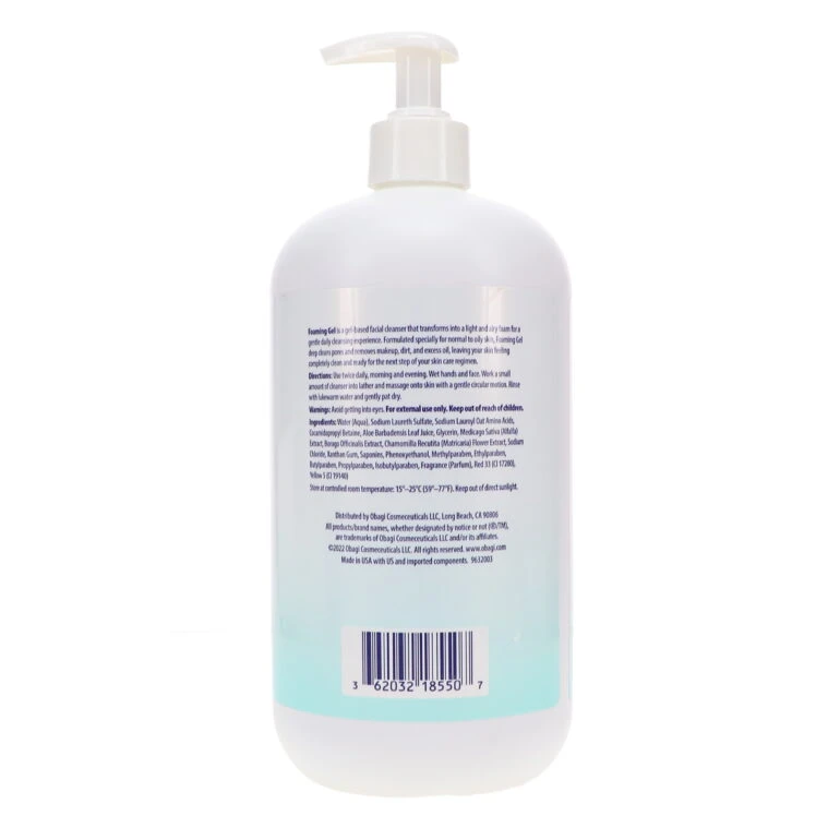 Obagi Nu-Derm Foaming Gel deep removes impurities like dirt, oil and other pollutants by cleansing your pores with a gentle complex of oat amino acids. Borage extract tones and conditions your skin and Alfalfa extract detoxifies to prevent breakouts and reduce excess sebum. Aloe vera gel cools redness and soothes inflammation to leave your skin feeling clear and fresh. The Obagi skin care line offers uniquely powerful skin care products with a wide range of benefits, including rejuvenating and anti-aging actions. The Obagi system may help to increase smoothness, diminish the appearance of fine lines and wrinkles, improve elasticity, reduce pores, even skin tone, generate balance, normalize oil production, correct blemishes, reduce hyperpigmentation and age spots, increase the skin’s tolerance to external elements and its ability to hold moisture through its range of many regimens that work together to achieve a targeted goal.