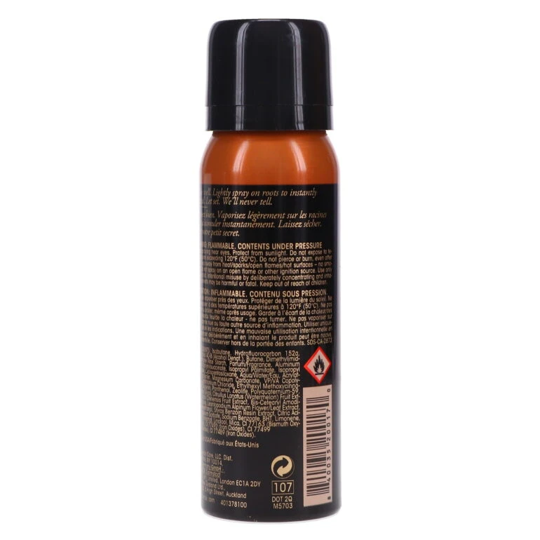 | How To Apply | Shake well. Lightly spray on roots to instantly conceal. Let set. We'll never tell. |