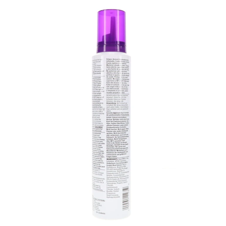 Enjoy the volume this airy and fluffy white foam produces, along with the lemon and lime scent. The ginger in the foam gives your hair moisture and shine while copolymers supply the flexible body and hold. The foam does not contain gluten or parabens.