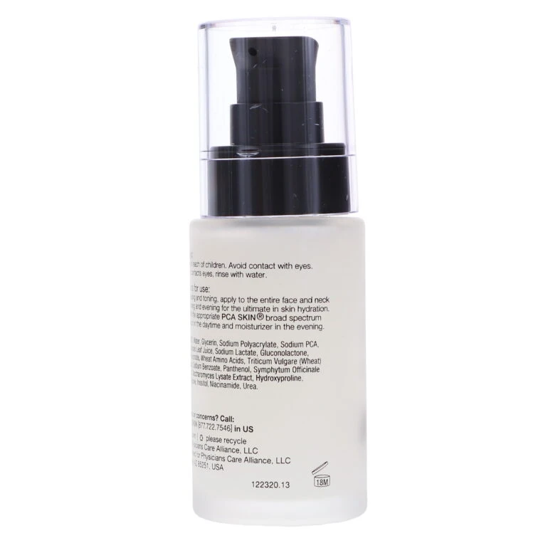 | How To Apply | After washing with the appropriate PCA SKIN cleanser, apply evenly to entire face and neck morning and evening. Finish with a PCA SKIN broad-spectrum sunscreen moisturizer in the morning. Apply throughout the day for instant hydration of dry or parched skin. May be used in conjunction with or as a replacement for any PCA SKIN nighttime moisturizer, as needed. |