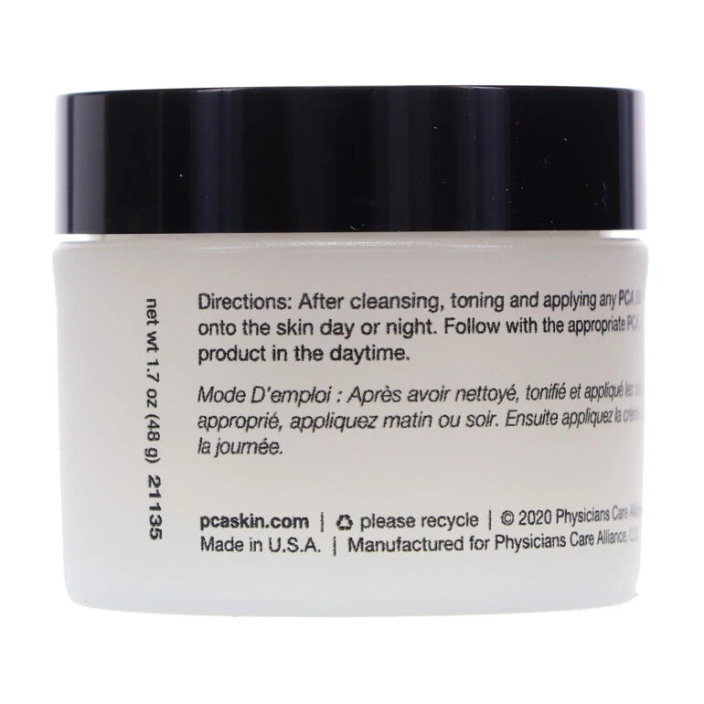 | How To Apply | After gently cleansing with appropriate PCA Skin cleanser, apply generously to area of treatment. Follow with appropriate PCA Skin sunscreen moisturizer during the day, nourishing moisturizer at night. |